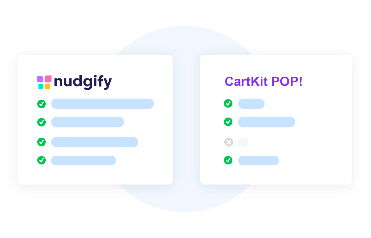 Unlike CartKit POP limited options, Nudgify builds long-term customer value. To do this, CRO experts have designed industry and page-specific templates to create consumer trust, engagement, and memorable experiences.