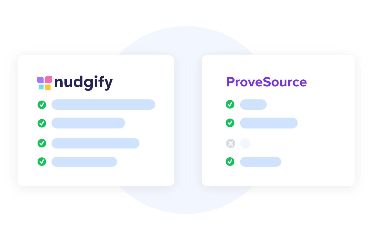 Nudgify is the best ProveSource (ProveSrc) alternative that offers social proof notifications based on real-time data. Nudgify offers a full suite of social proof & FOMO notifications – including low-stock, popularity and Friction Nudges.