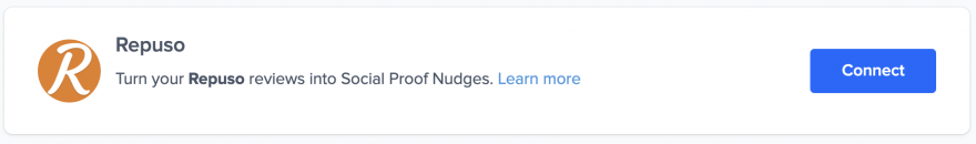- Copy Your Webhook URL: Access the integration page in your Nudgify account to find the Repuso integration and click “Connect” to obtain your Nudgify Webhook URL.