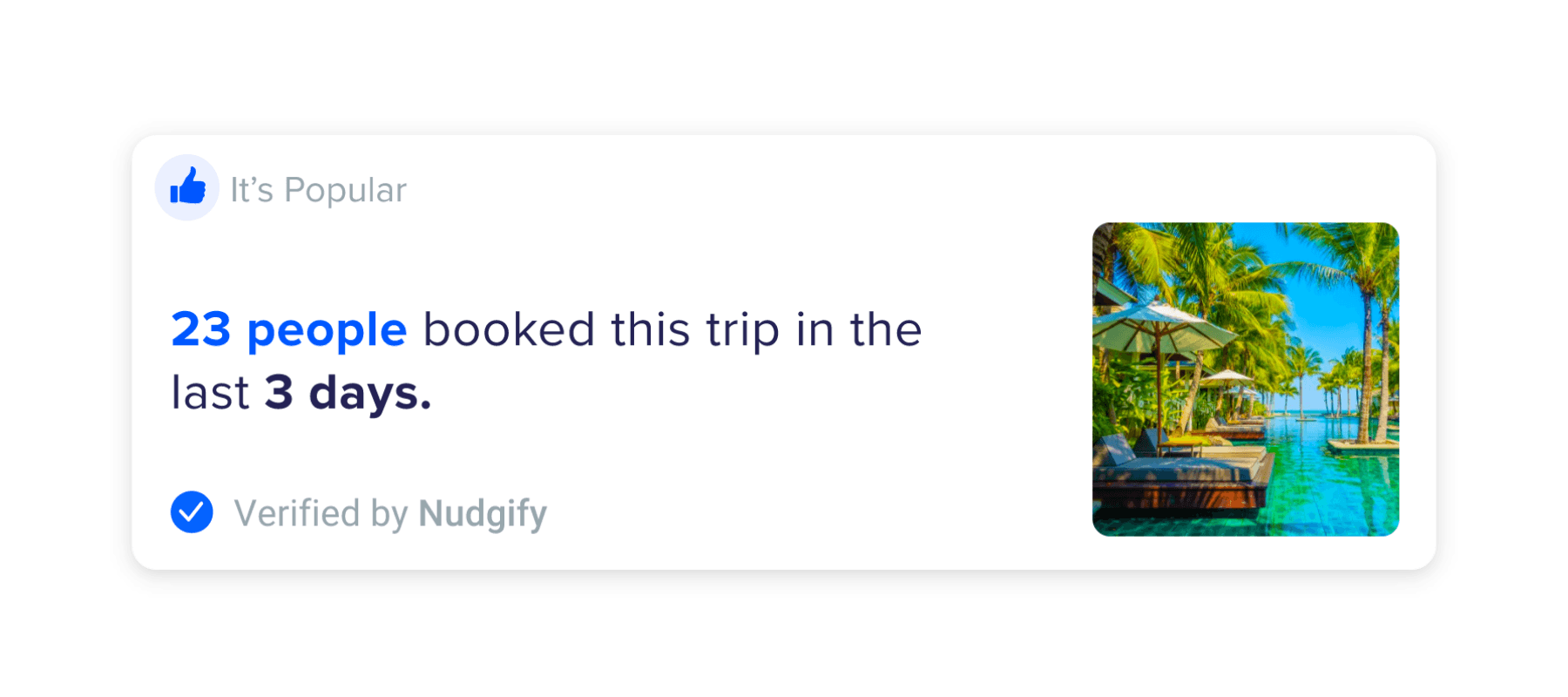 Show recent bookings to reassure visitors that they have chosen a good option. Highlighting scarcity helps persuade travellers to book earlier.