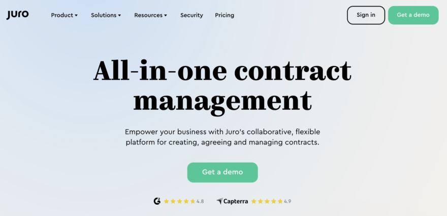 An example of SaaS is Juro that displays a cumulative star rating from both Google and Capterra right on their homepage: