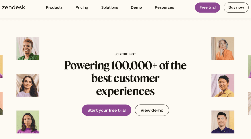 Zendesk, a customer service and engagement platform, effectively utilizes the number of customers as social proof on their landing pages. On their website, Zendesk proudly highlights the impressive number of businesses that rely on their platform for customer support, currently exceeding thousands.