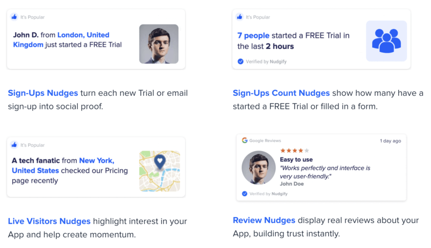 - Notifications: Incorporate social proof notifications, such as recent sign-ups, purchases, or user activity, as prominent elements above the fold on your landing page. These real-time notifications create a sense of urgency and demonstrate that others are actively engaging with your product or service.